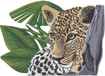 This leopard was created as a stock design and is available in our Ginko Design Collection. In 2003 this design was the EMB Honors Stock Design First Place Winner.
