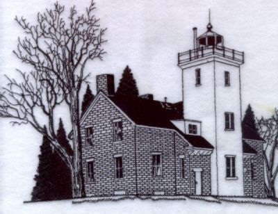 We've been toying with the creation of fine art using embroidery as the medium. This was our first piece where we tried special techniques to capture the look of line art. We were pleased with the results and it has since been stitched on artist canvas and framed. This particular piece is of the "Forty Mile Point Light" located north of Rogers City, Michigan (1897). An entire series of Michigan light houses is in progress.