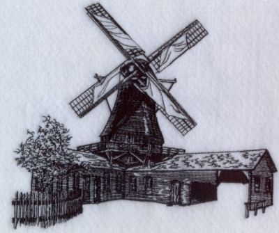 This design came to us as a normal customer order. The Prairie Mill Windmill was being restored and the design would be sold in the gift shop. The artwork was line art and the customer wanted to maintain this look. Thoma knew exactly what look he wanted to capture, but the pathing of such a detailed design would not be easy, because too much back tracking would ruin the line art look. After a lot of deep thought the design was complete comprising of 27,000 stitch and one single trim, when the design is complete.